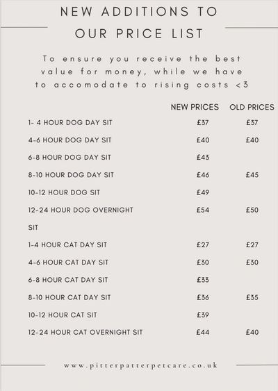 From 1st March 2026 there will be a little change in price to our day and night pet sits.